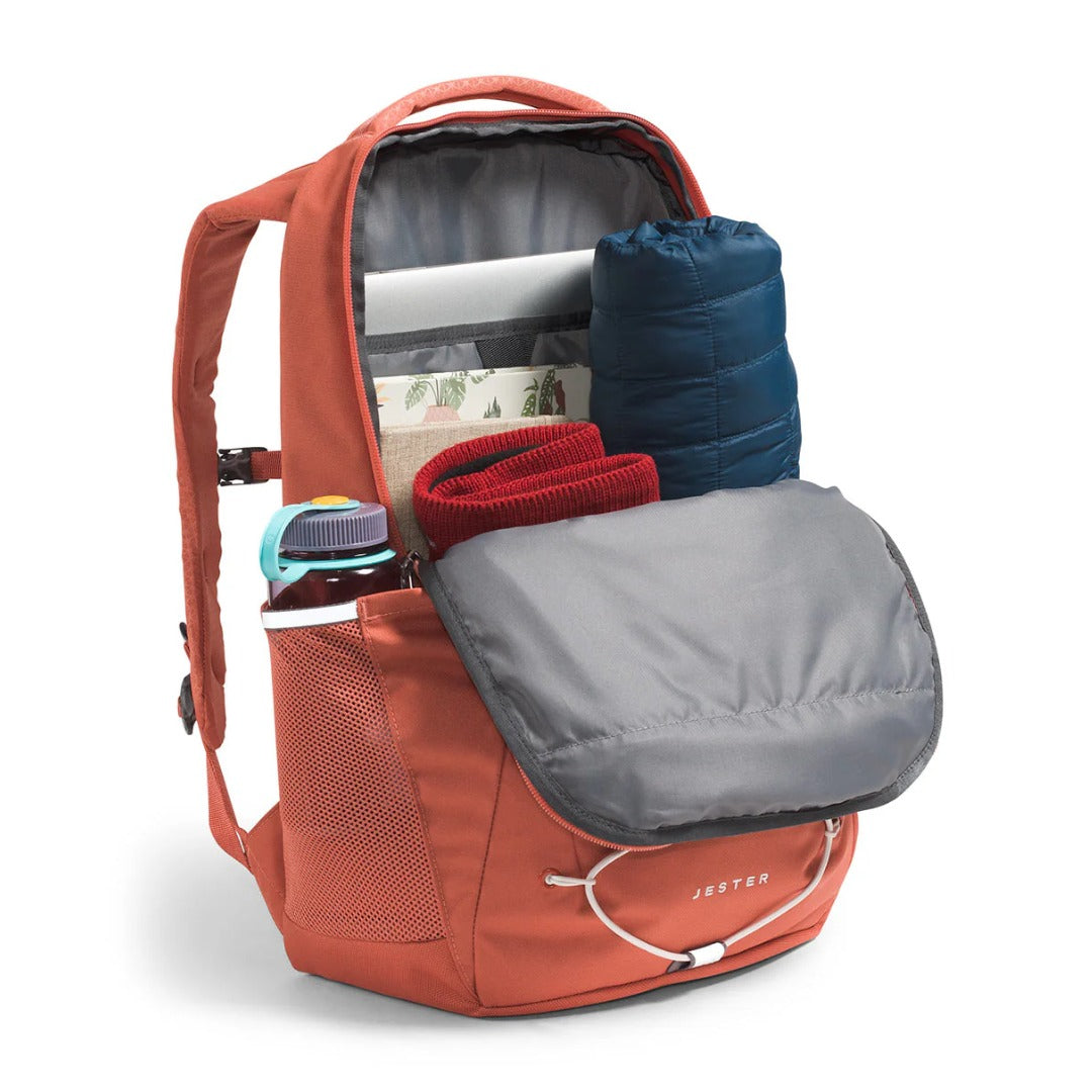 The North Face Women’s Jester Backpack is designed for comfort, practicality, and style, making it ideal for school, work, or everyday adventures. Built with a women-specific suspension system, it offers balanced support and all-day comfort. The backpack includes a roomy main compartment, a padded laptop sleeve, and a front organizer pocket for essentials. An external bungee system provides extra storage, while dual side pockets hold water bottles. Lightweight, durable, and versatile, this backpack ensures organization and reliability wherever you go.